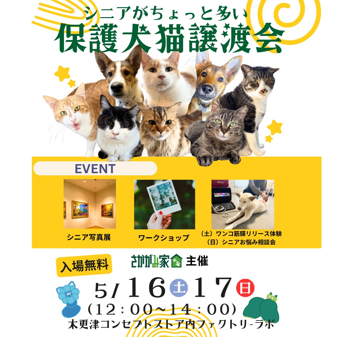 さかがみ家主催「シニアがちょっと多い保護犬猫譲渡会」