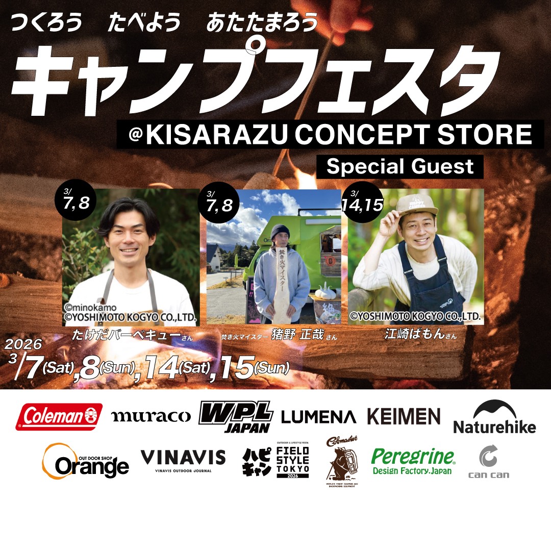 キャンプフェスタVol3@KISARAZU CONCEPT STORE 3/7,8,14,15開催!