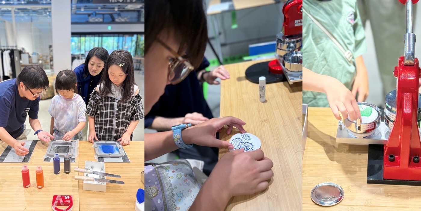 そして、一通りのツアーを終えてワークシートも記入を終えたら、最後にPUTONsのキャラクターを端材にシルクスクリーン印刷をして、それを缶バッジにするワークショップを実施。