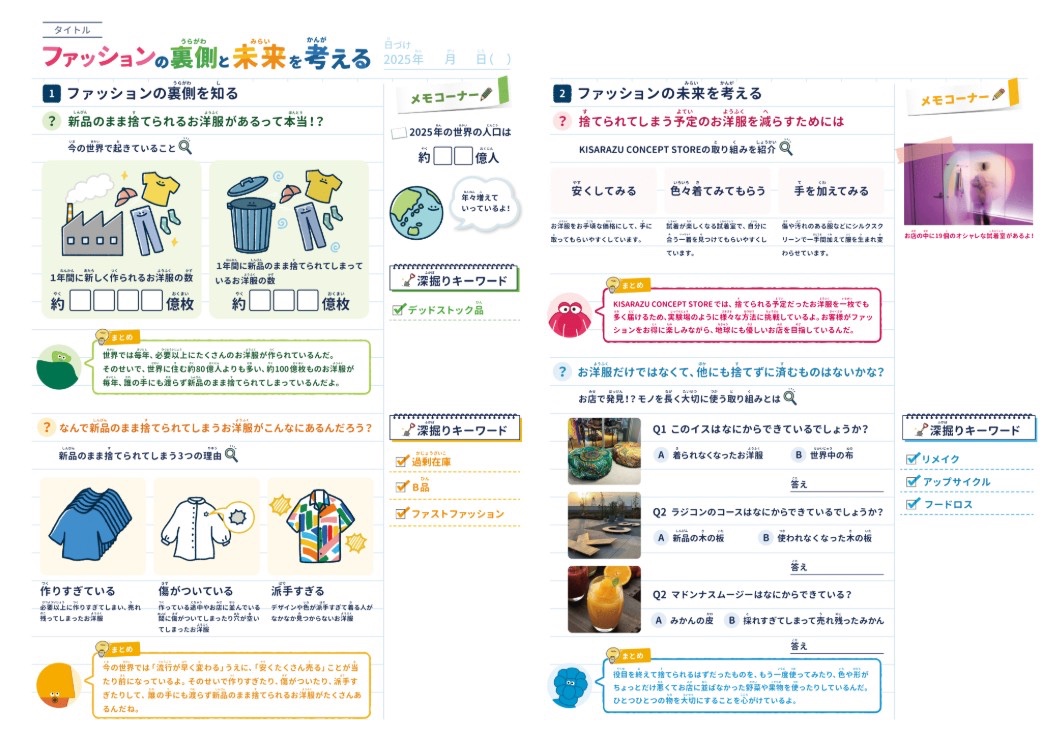 「宿題おたすけ大作戦」に参加される小学生にはワークシートを配布、店舗スタッフがご案内する60分のツアーの中でそれぞれについて学びながら記入していくことで、レポートが完成するという内容です。