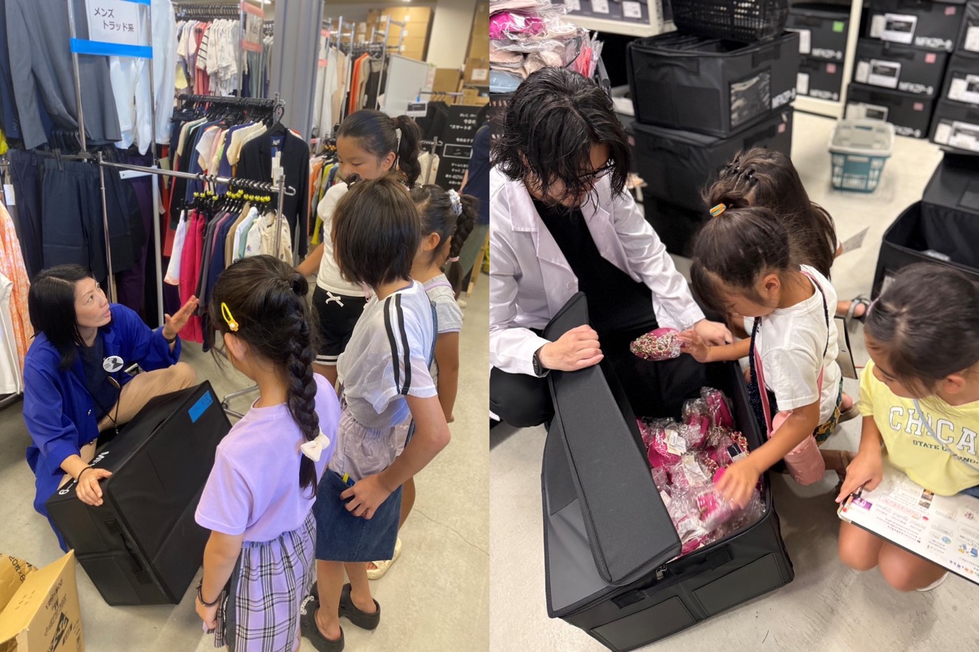 そして、2025年の夏、小学生を対象に「宿題おたすけ大作戦」と題し、店内をツアーしながら洋服のウラガワを学び、端材を使ったワークショップで楽しみながらものづくりの背景に触れていただく企画を実施。木更津市内の小学校を中心に、120名を超える小学生にご参加いただきました。