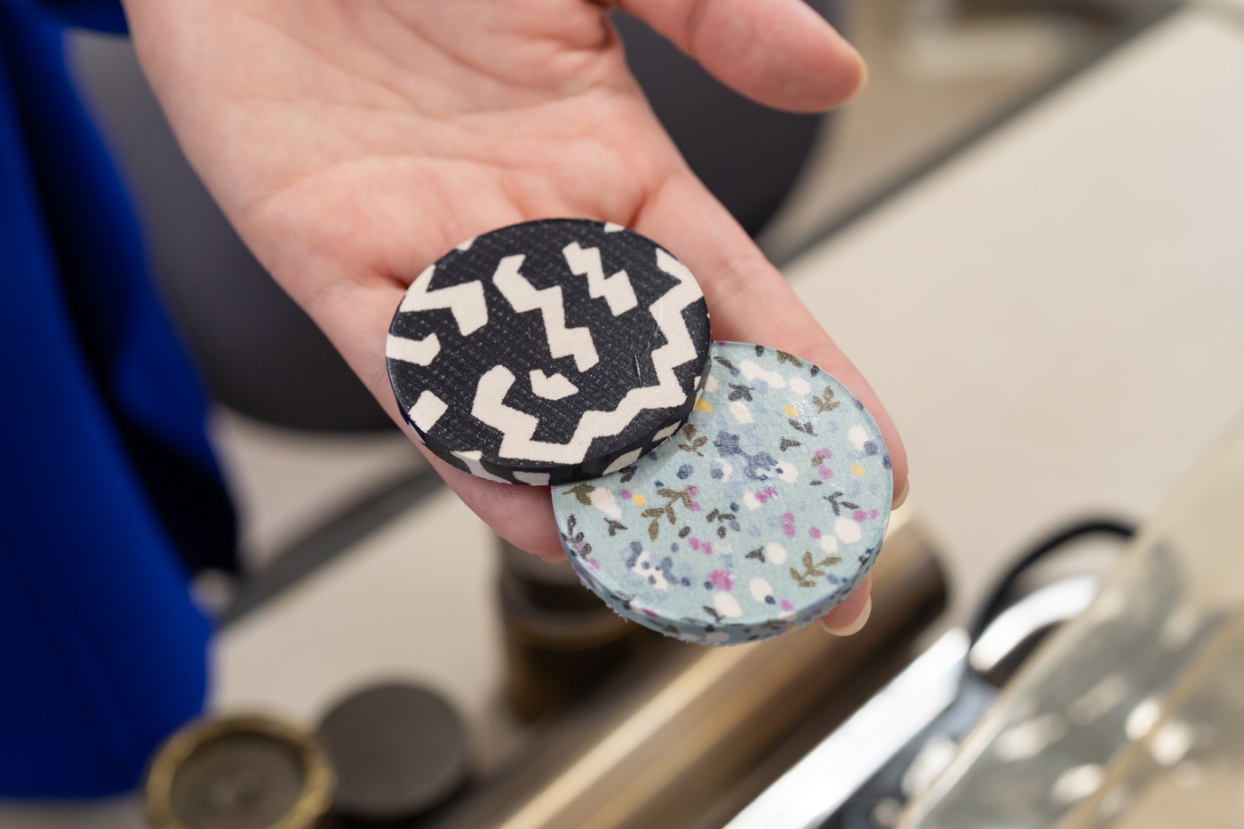 KCSではこういった研究内容をより身近に感じていただけるよう、文化学園大学 服装学部ファッション社会学科と近畿大学バイオコークス研究所と共同で行っている、衣類から次世代再生可能エネルギーを創る研究を公開・展示するブースを開設しています。